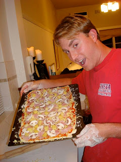 My adorable husband recently attended an all day Aussie BBQ School to add to his grillin' skills. He learned how to make pizzas on the barbie (as our friend Pete has done for us before!) and being the sweet man that he is, he decided to make one for dinner for us! He even made the dough from scratch! With much TLC & precision put into it, his first attempt at pizza on the barbie was simply magnifique!! :)